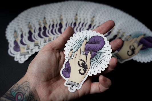 Crow & Crescent Yarn Scorpion Hand Tattoo Vinyl Sticker - 4"x2.89"