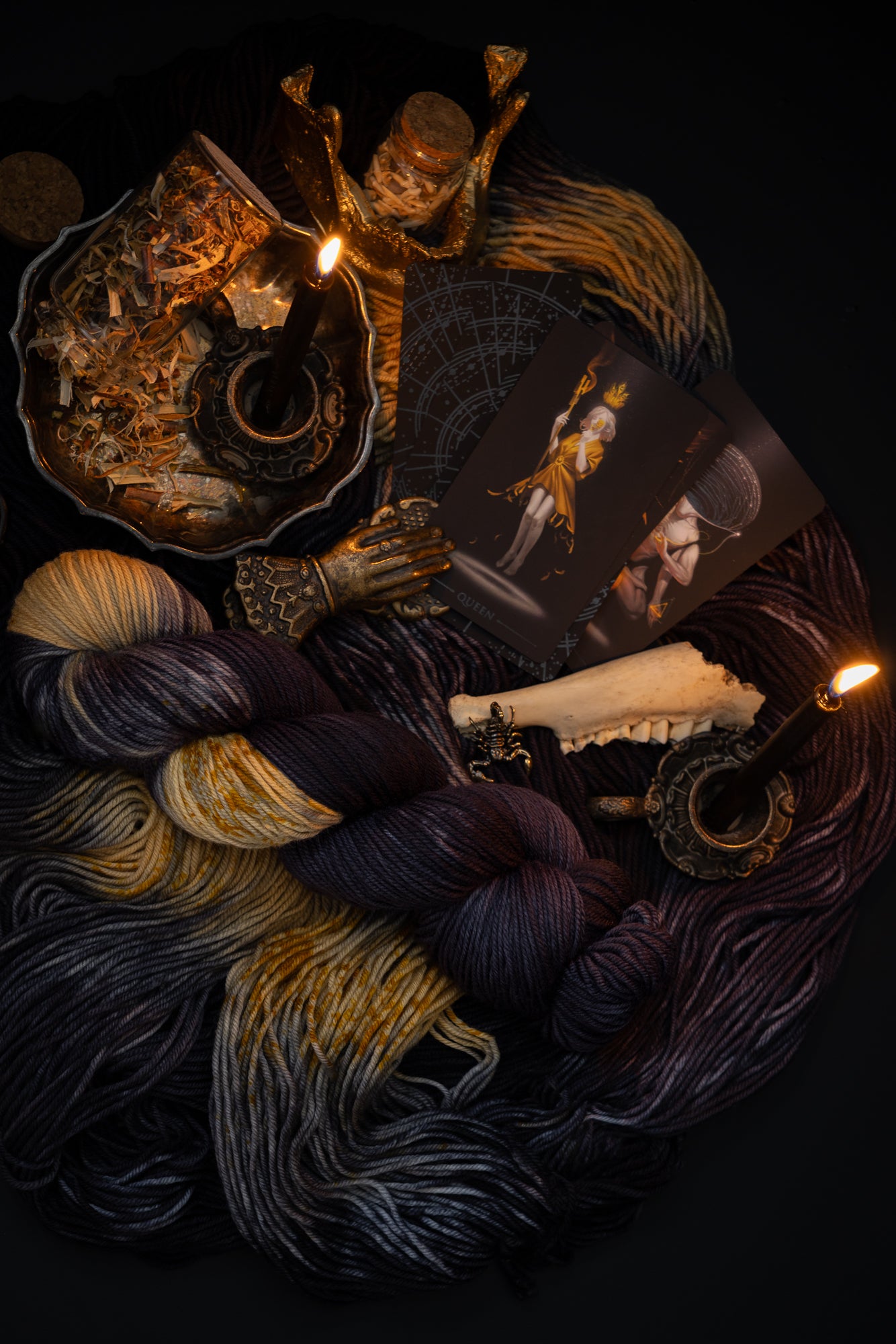 All skeins of Crow and Crescent Yarn are hand dyed with love in Shoreline, WA using high quality professional acid dyes in small batches. Each skein is unique, and dye lots vary.
