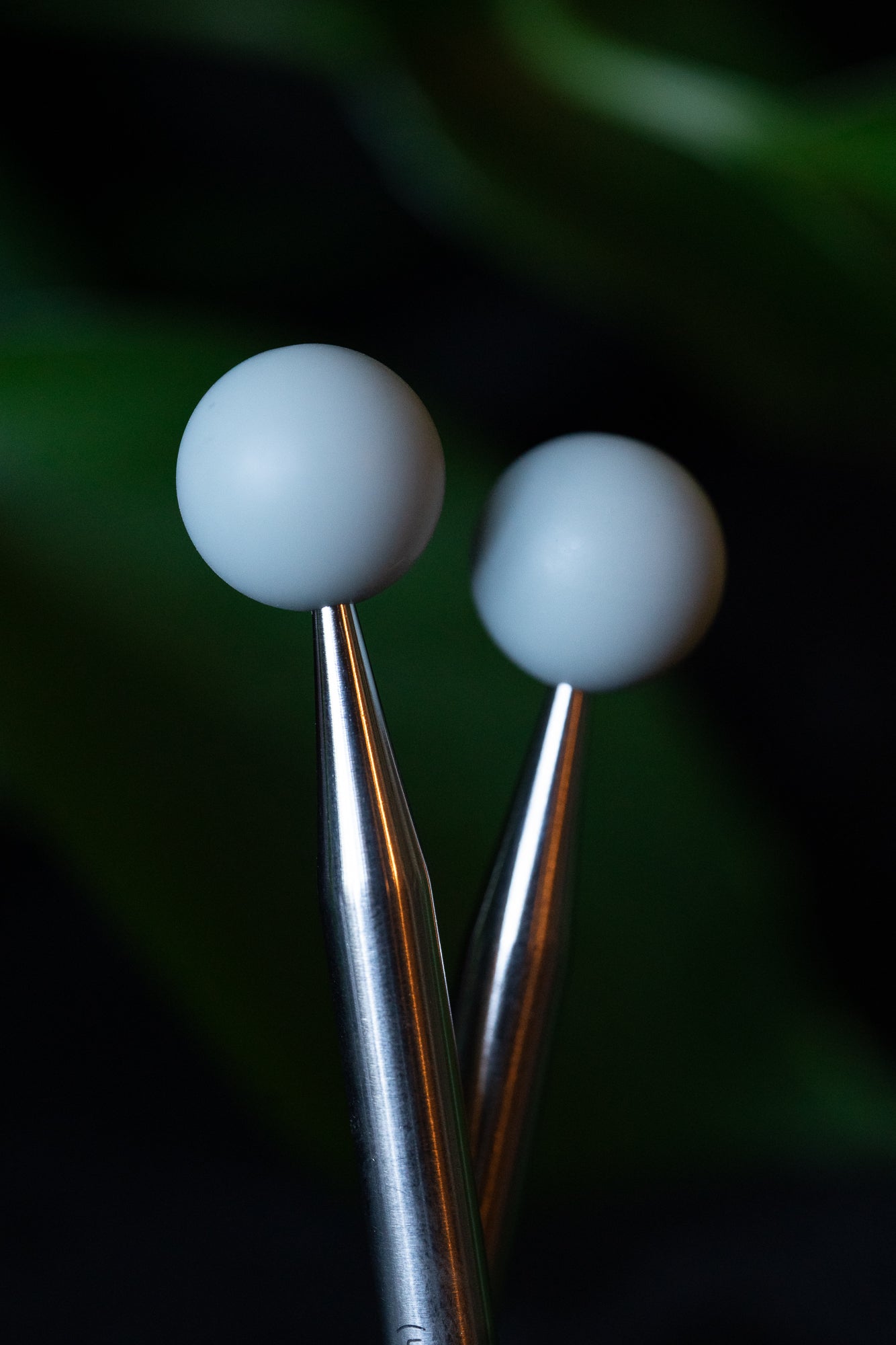 These needle tip protectors are made of semi squishy silicone and will fit most needle sizes.