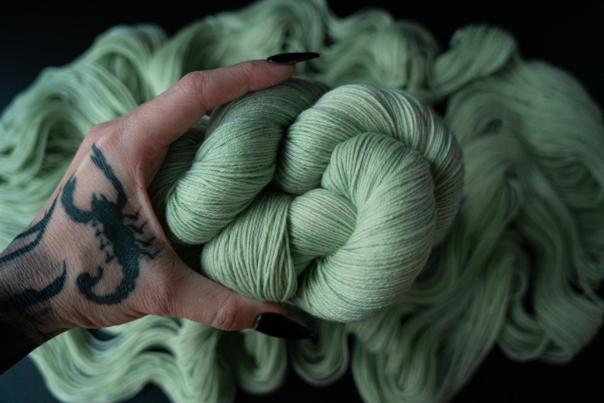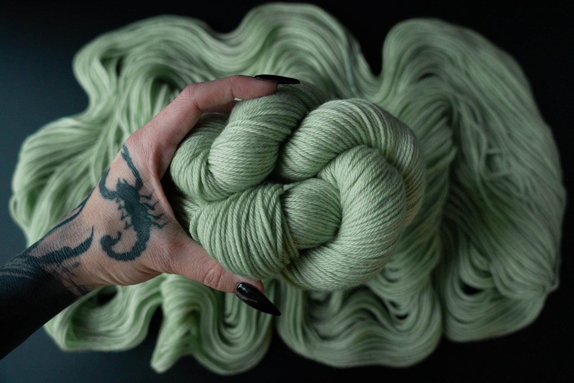 All skeins of Crow and Crescent Yarn are hand dyed with love in Shoreline, WA using high quality professional acid dyes in small batches. Each skein is unique, and dye lots vary.