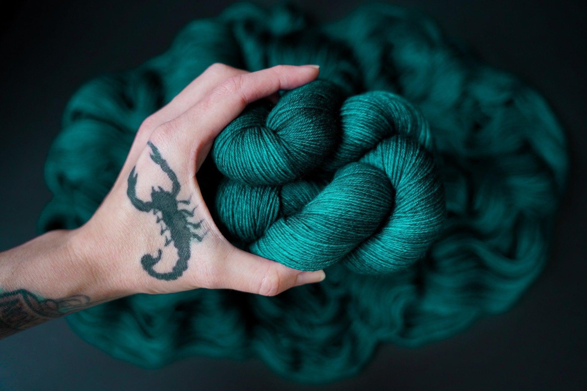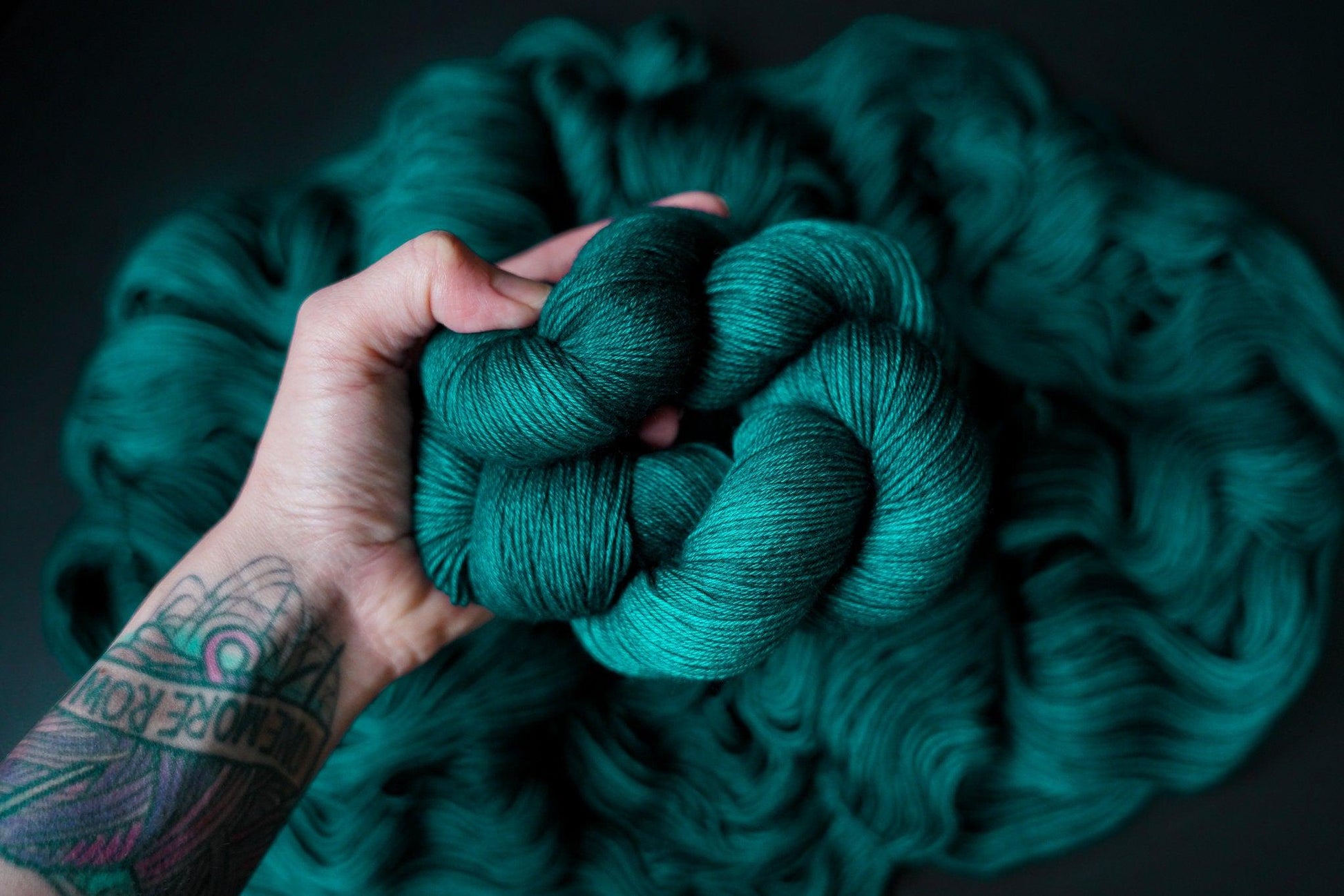 All skeins of Crow and Crescent Yarn are hand dyed with love in Shoreline, WA using high quality professional acid dyes in small batches. Each skein is unique, and dye lots vary.