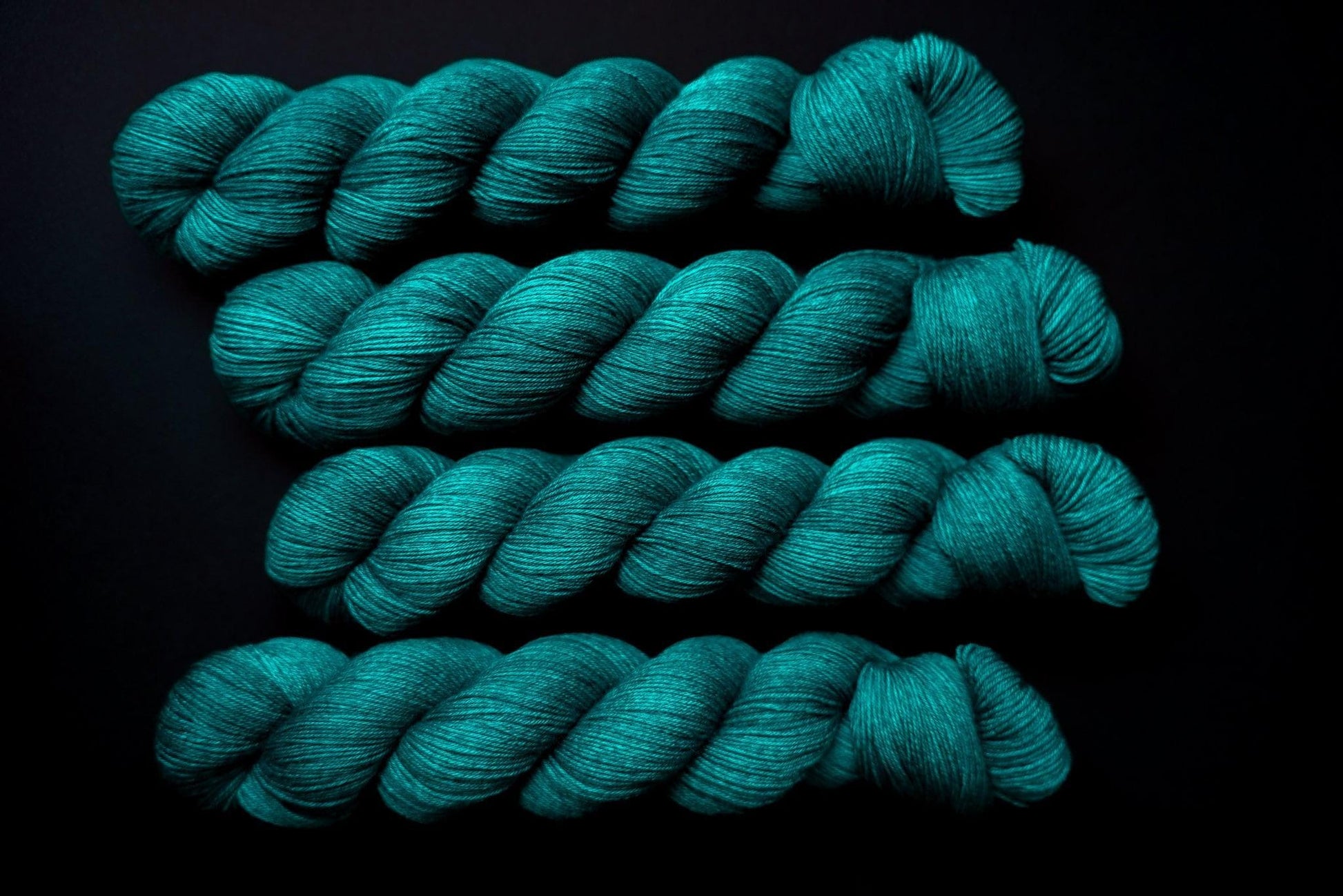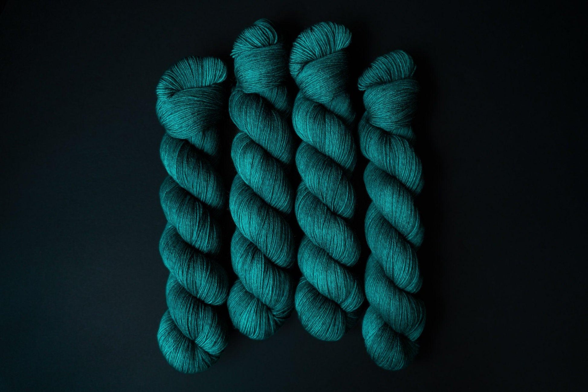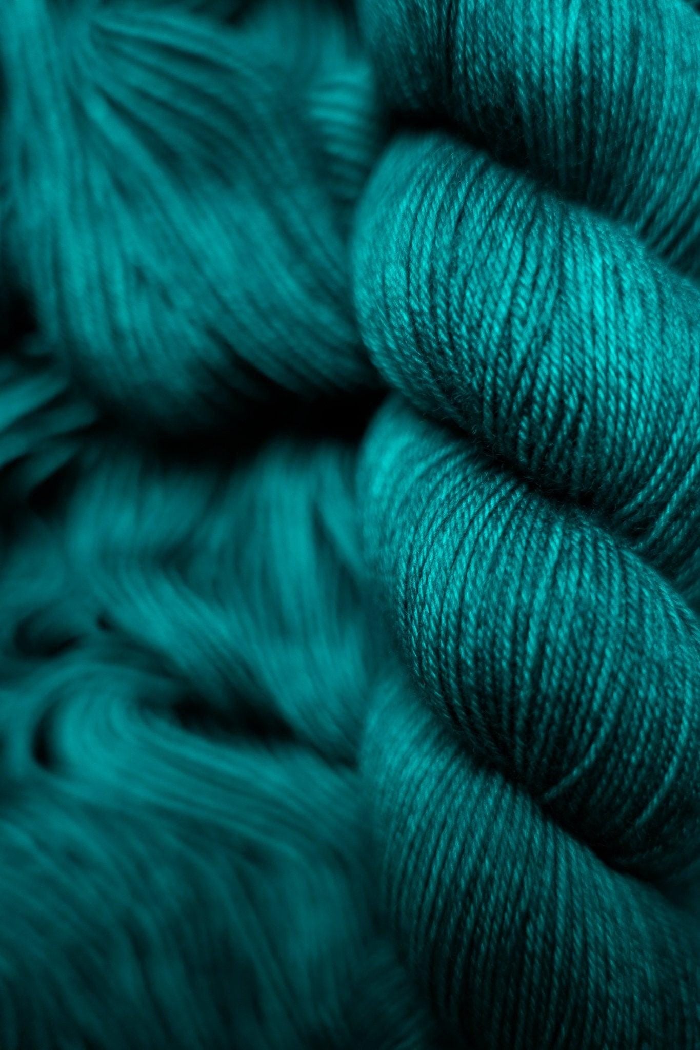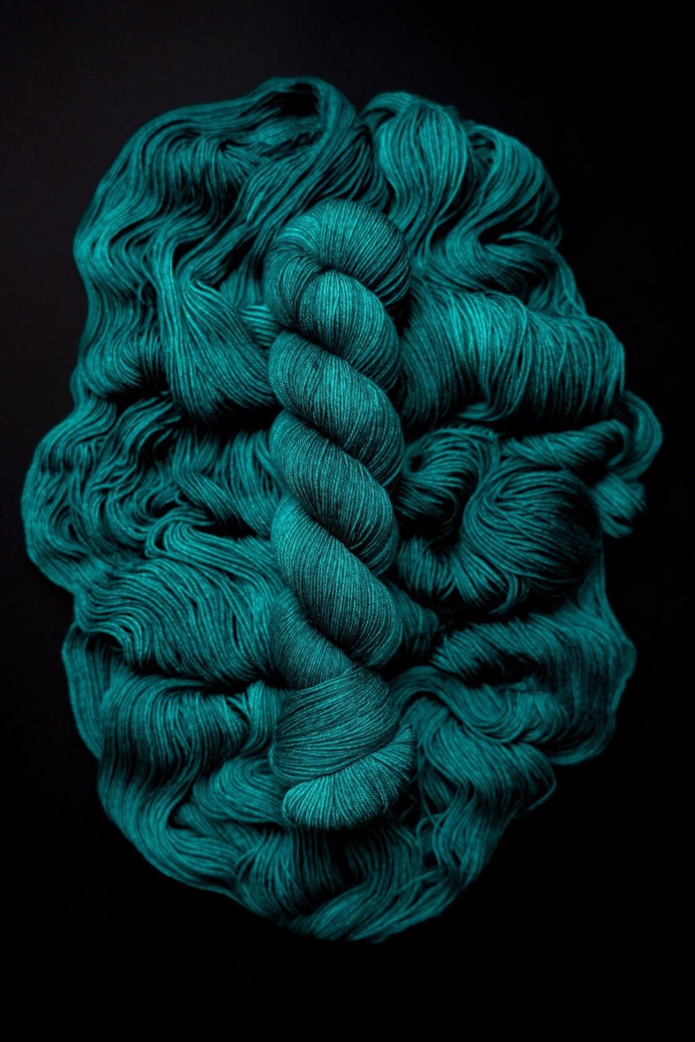 The color is a vibrant teal and much more saturated in person than it appears online due to limitations of the way RGB colors are rendered. Please note that depending on your device or monitor settings colors may appear slightly different than they are in person. Color also varies slightly by base, as the dye absorbs differently on different fiber content.