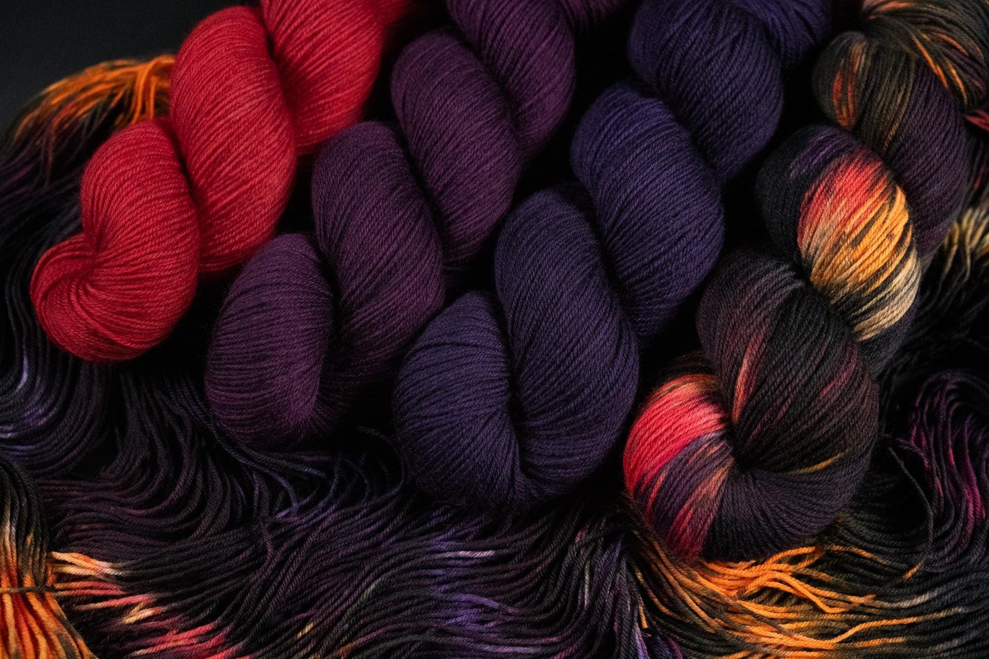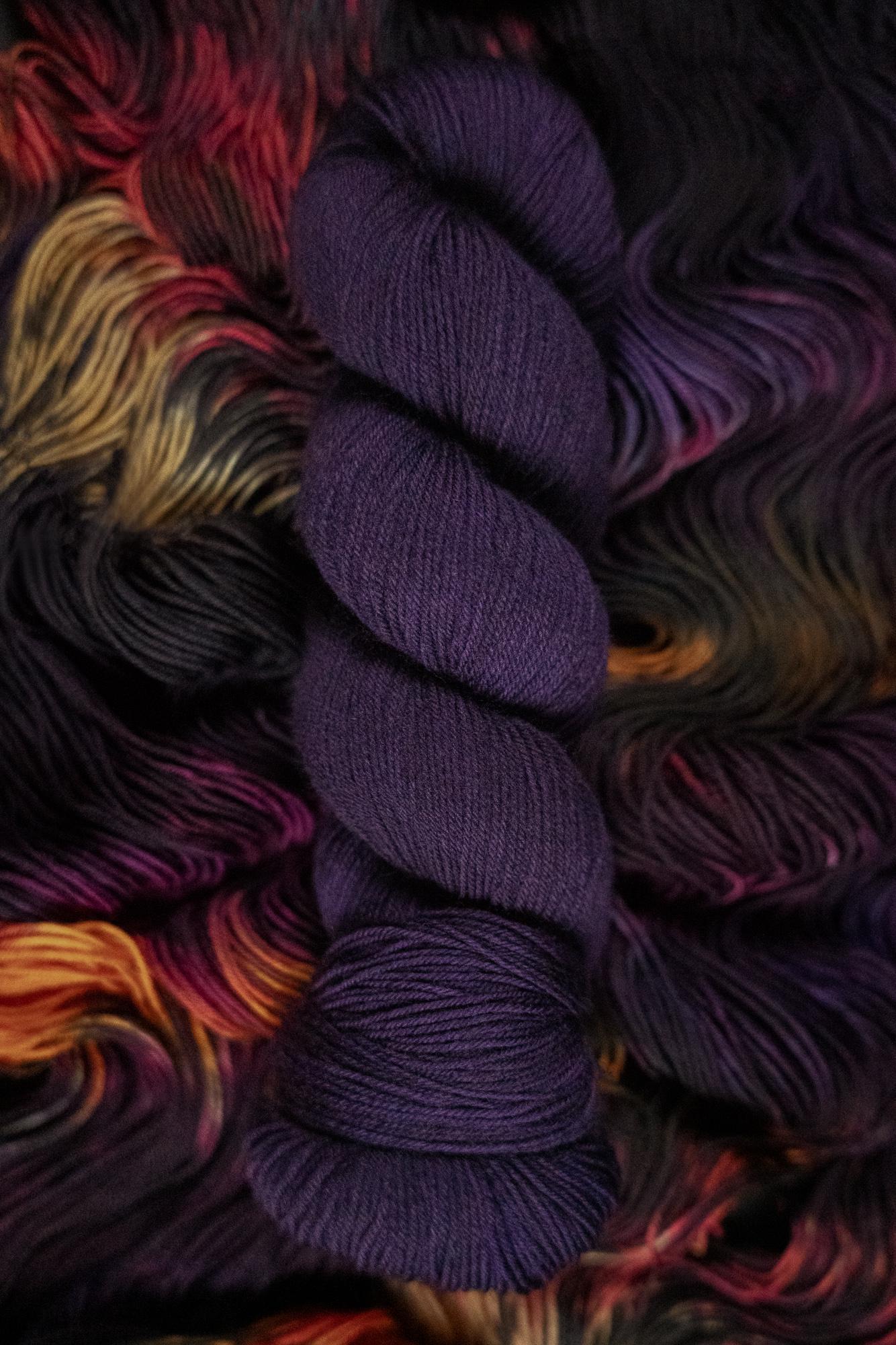 The other three colrways in this collection are The Witching Leaves (variegated), Warding Glow (coral), and Nightwatch (fig purple). These colorways were created as a collection for the full moon in November 2024.