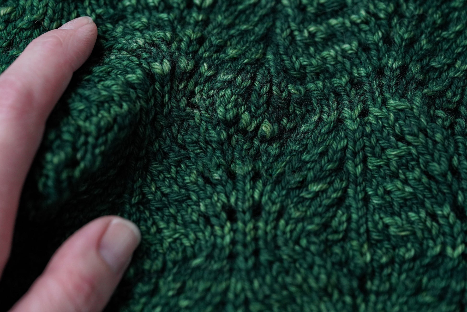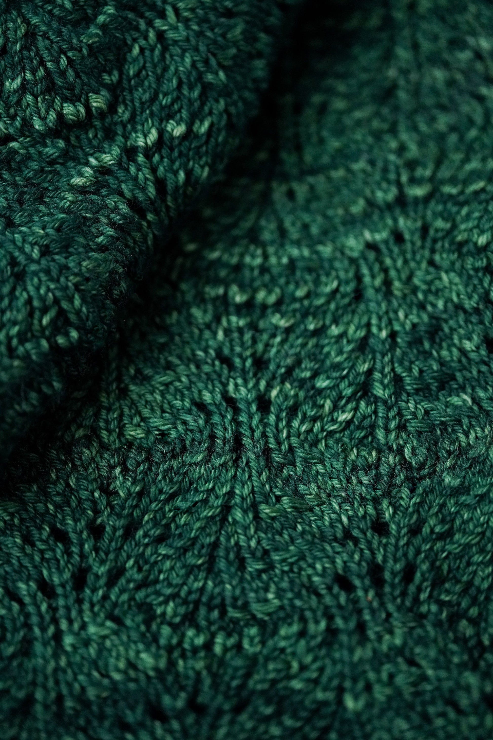 Serana is worked in the round with lots of stockinette and some lace pattern rows in between.