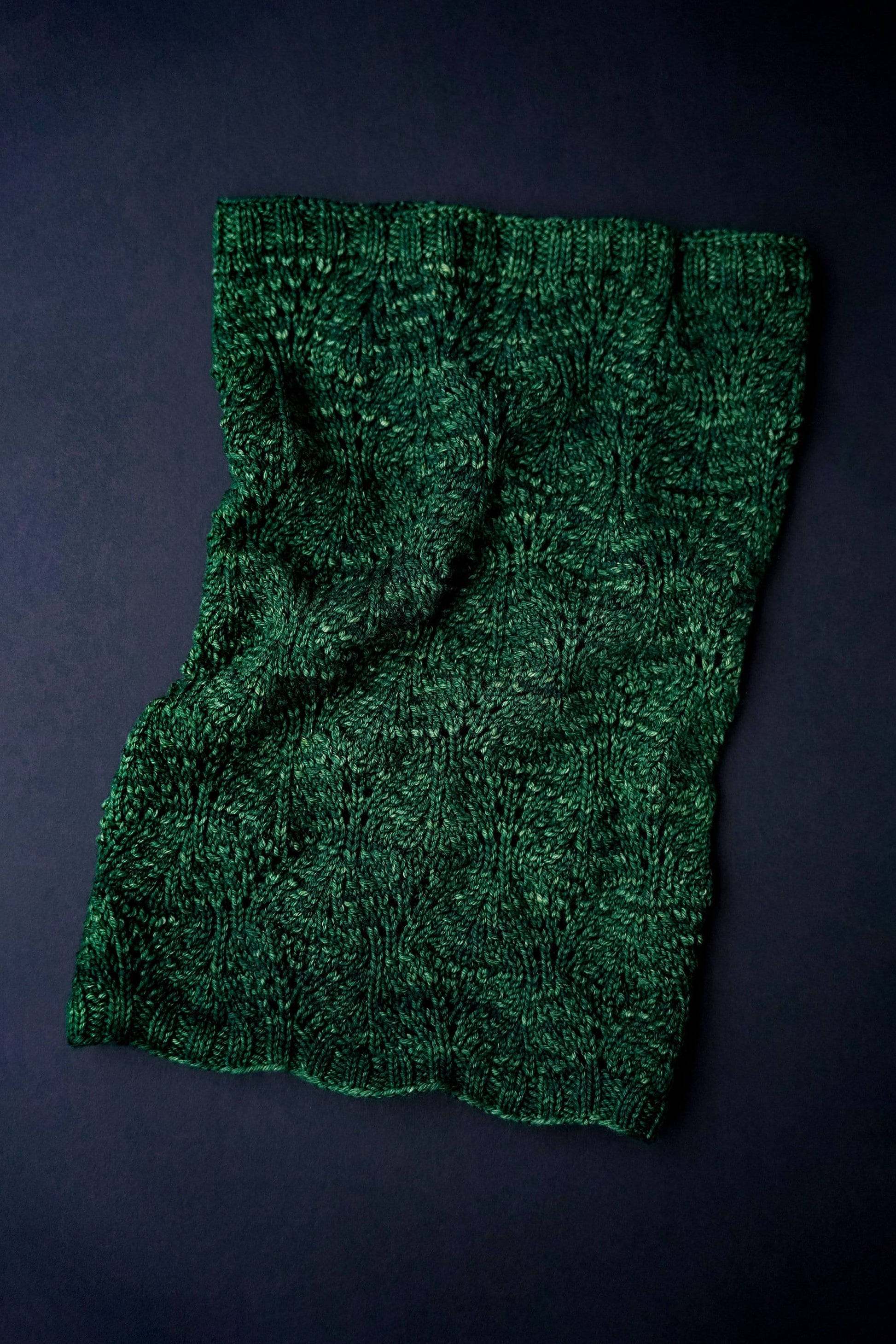 (128 stitch sample was made using a skein and a half of MadelineTosh DK in the colorway Moorland with 4 pattern repeats)