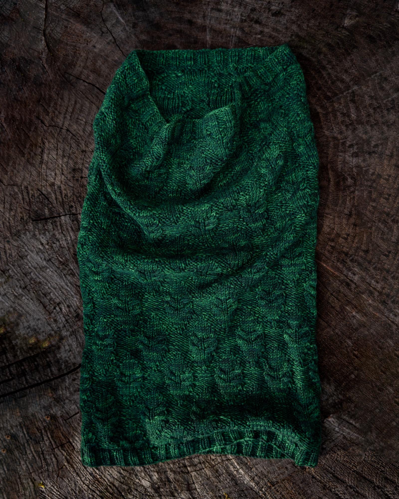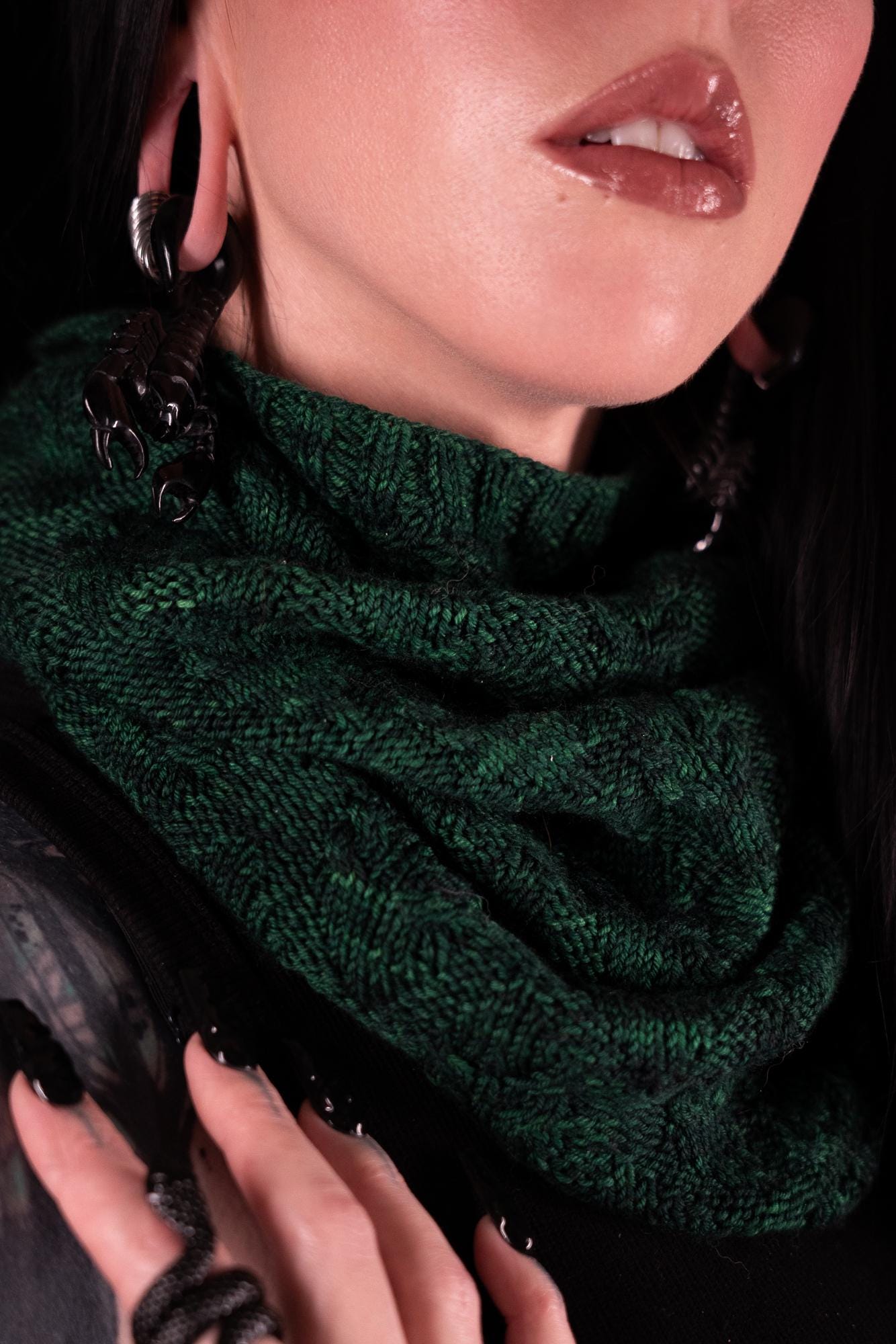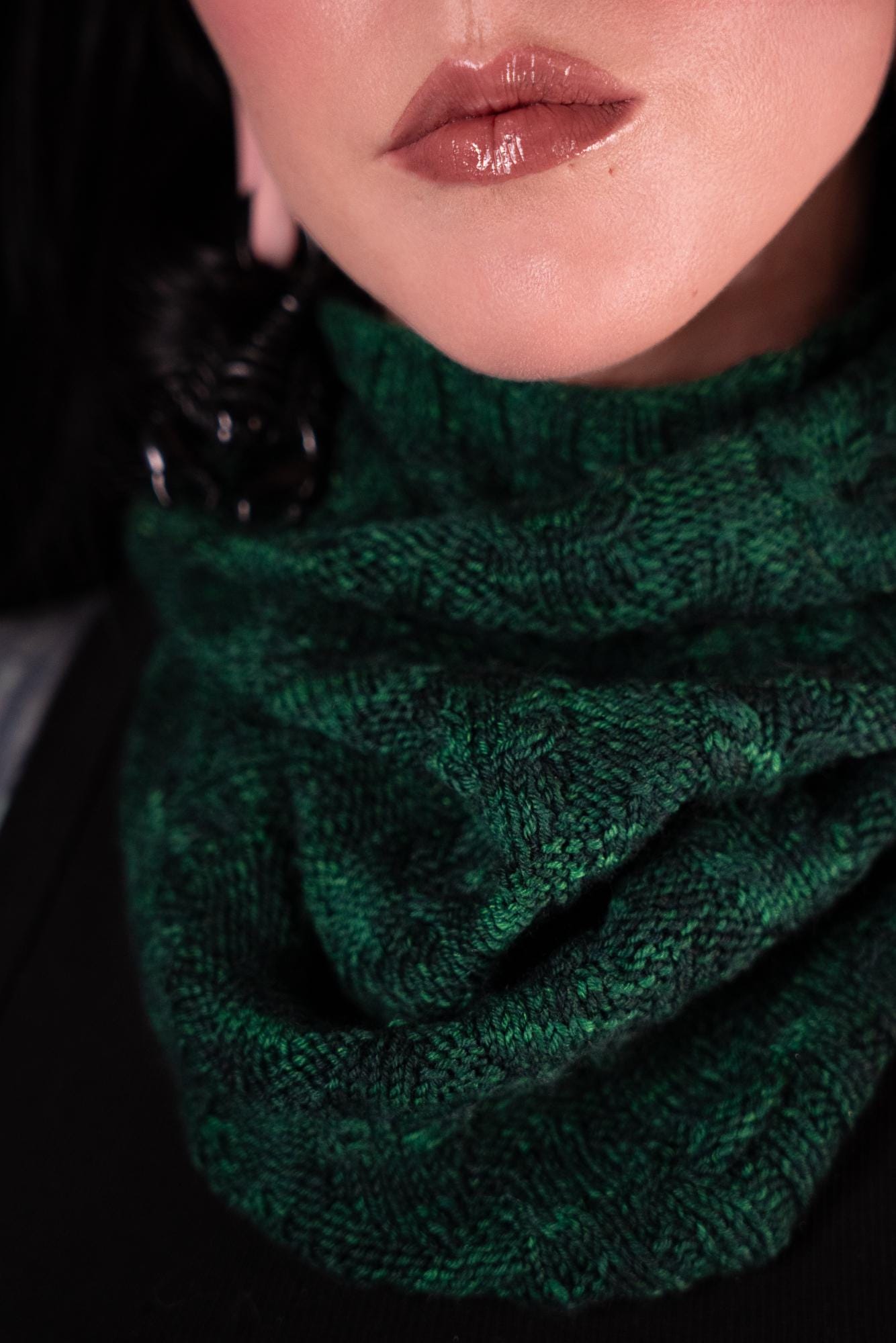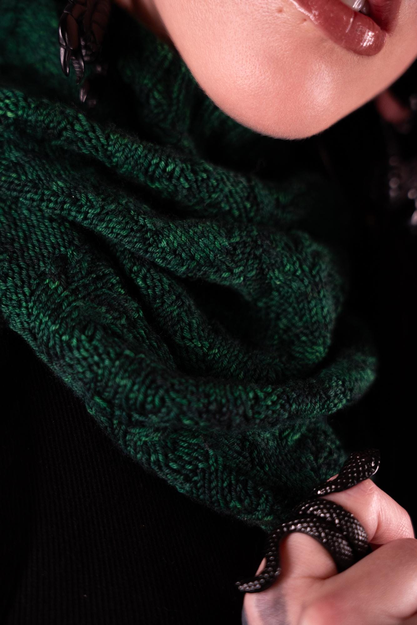 The Witch Woods cowl pattern is a very simple introduction into cabling, offering a little bit of interest without too much complication, which makes it perfect for the advanced beginner or someone looking for a project that doesnt take too much extra thought.