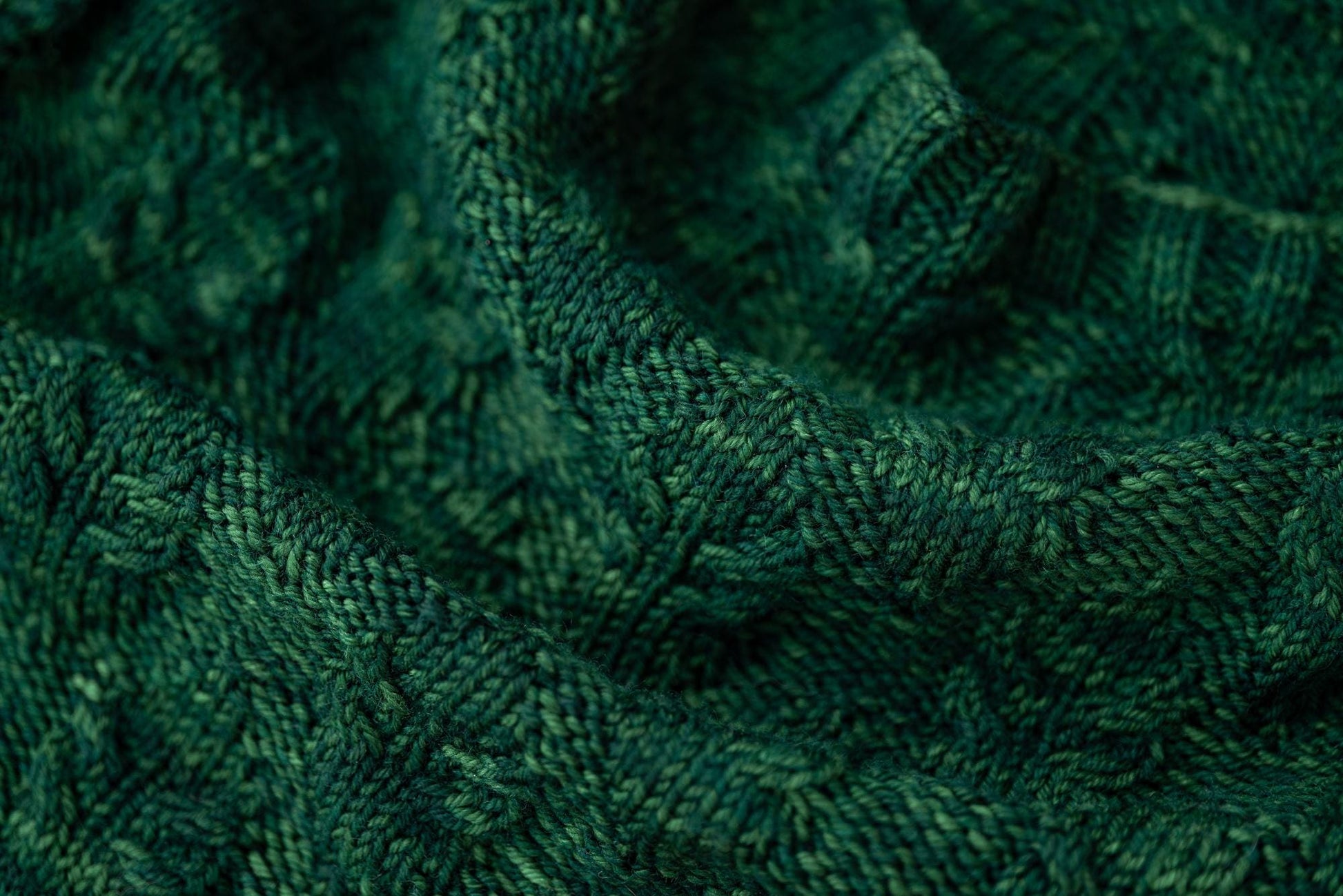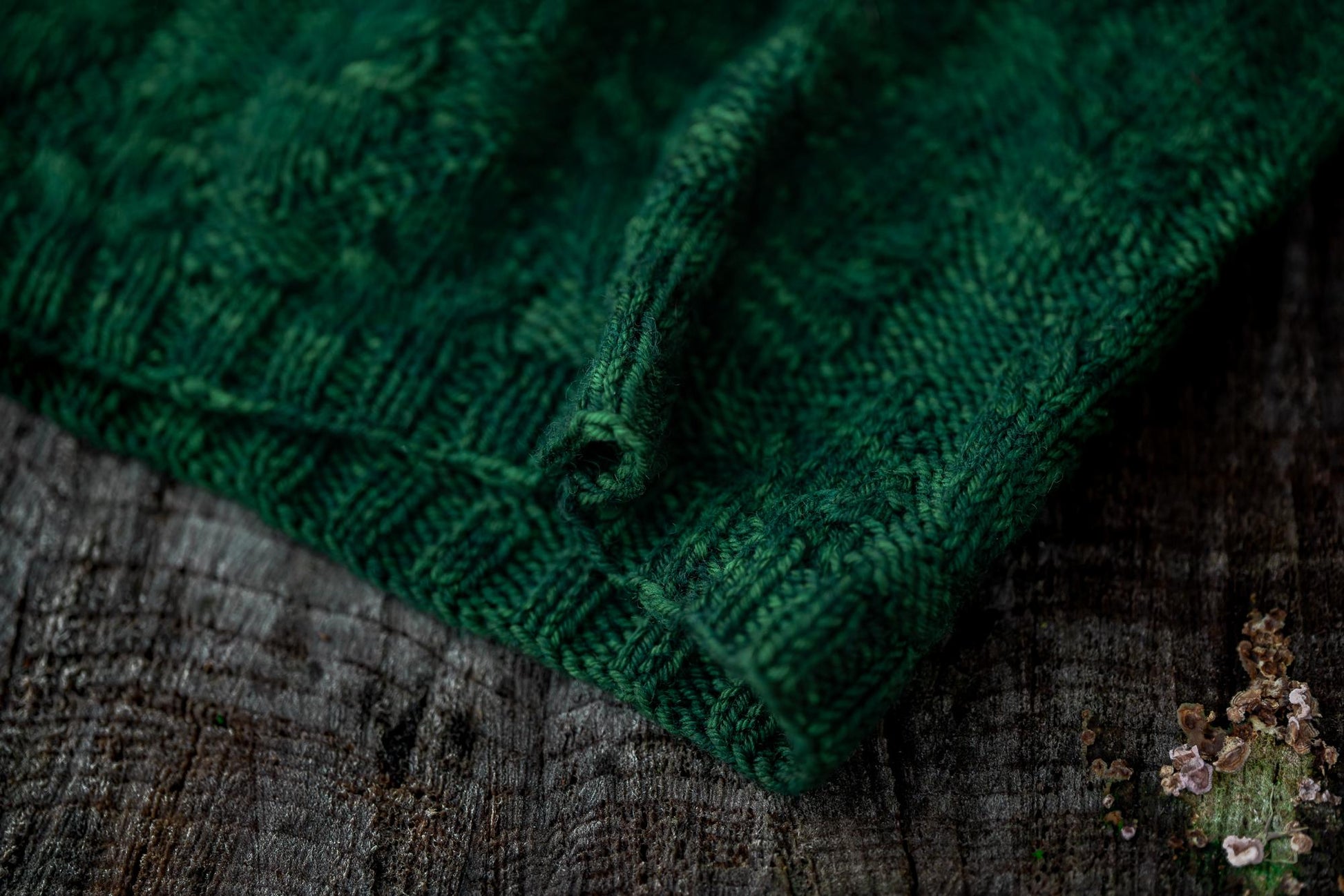 (140 stitch sample was made using a single skein of Crow & Crescent Yarn Callisto Sock in the colorway Witch Woods)