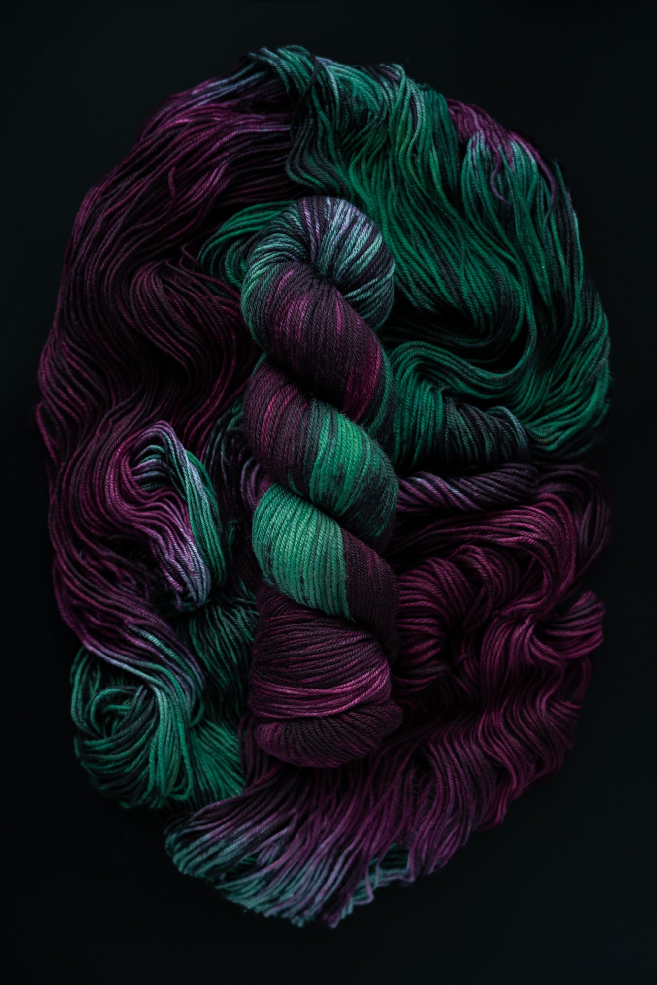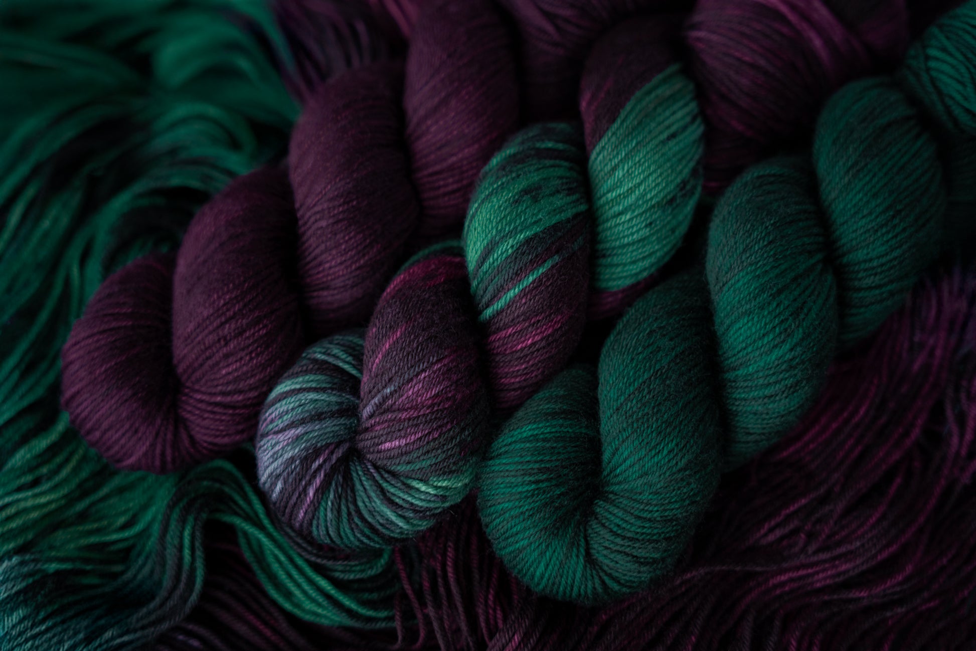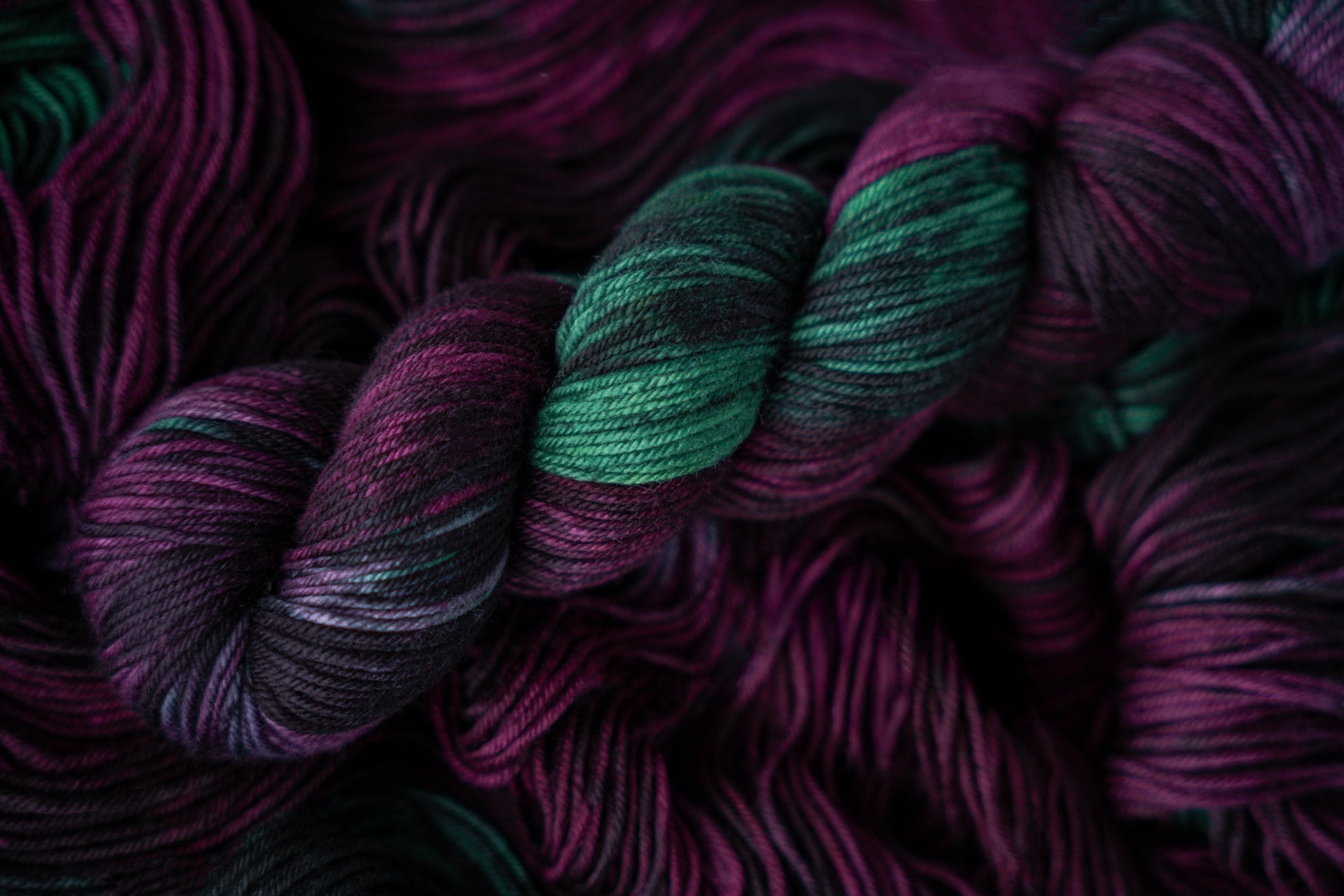 All skeins of Crow and Crescent Yarn are hand dyed with love in Shoreline, WA using high quality professional acid dyes in small batches. Each skein is unique, and dye lots vary.