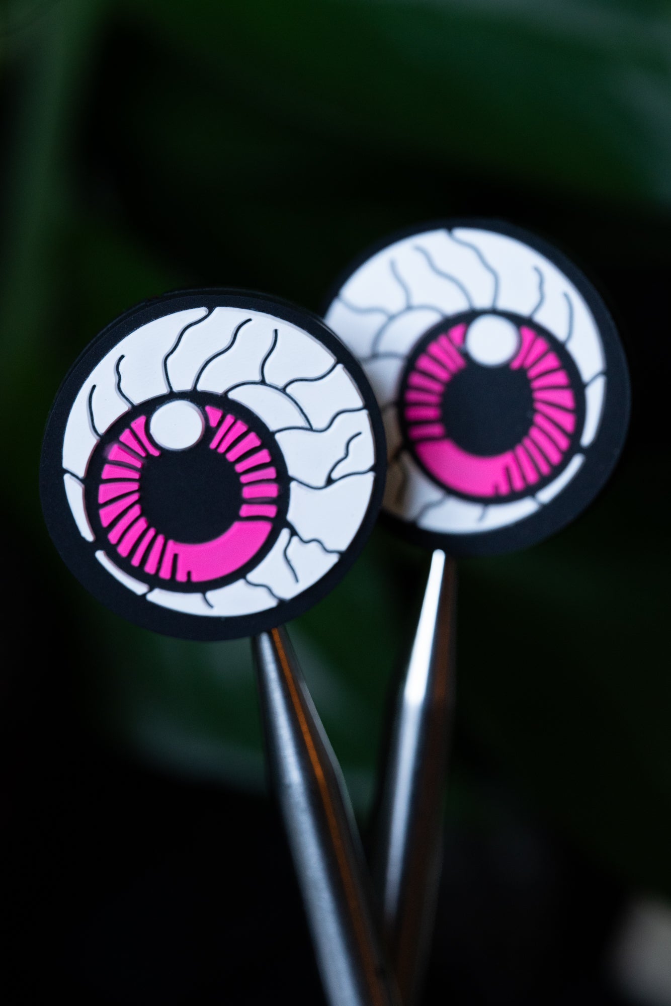 These needle tip protectors are made of semi squishy silicone and will fit most needle sizes.