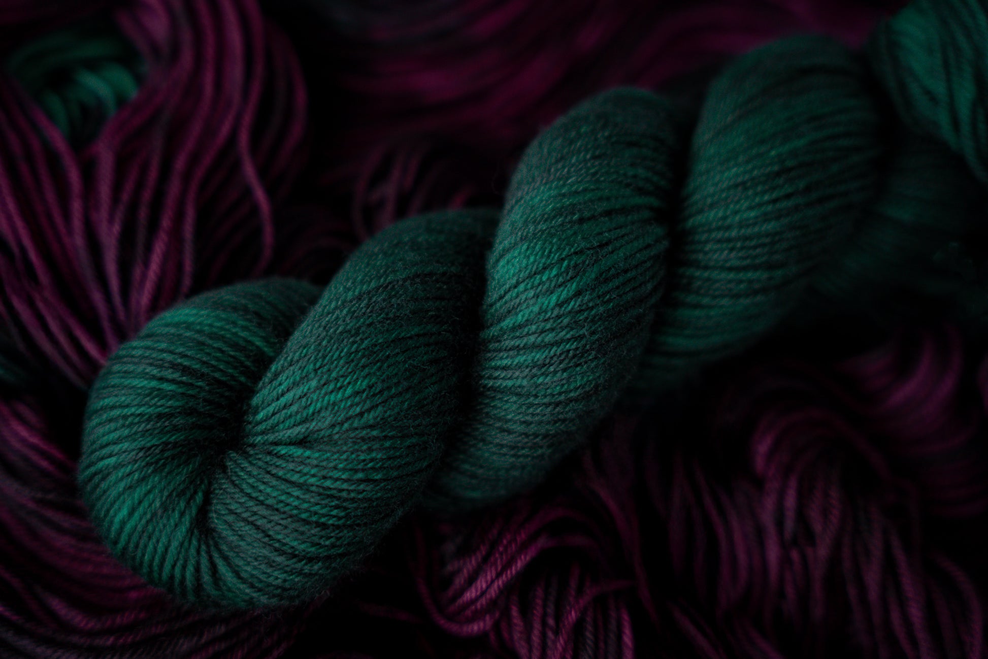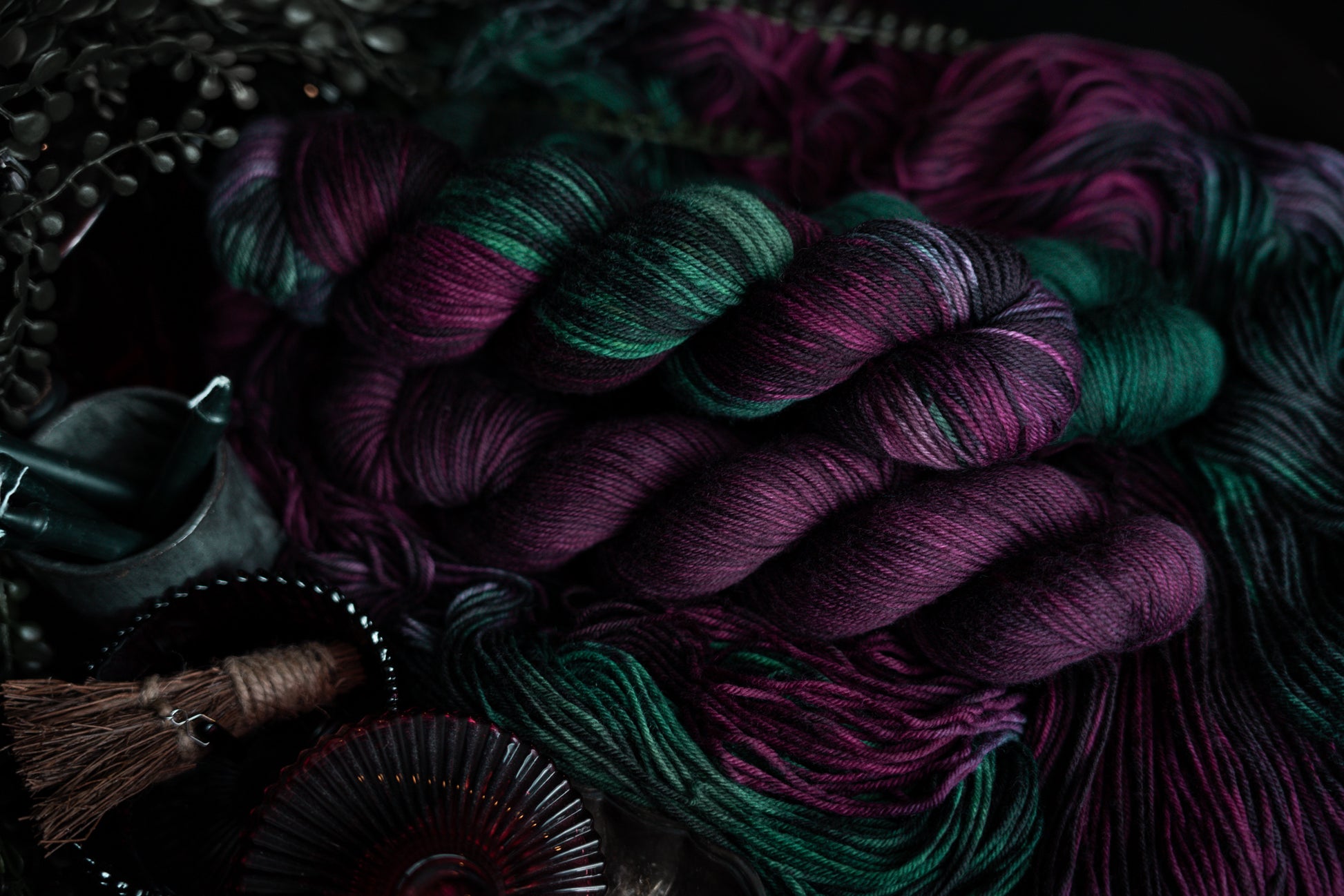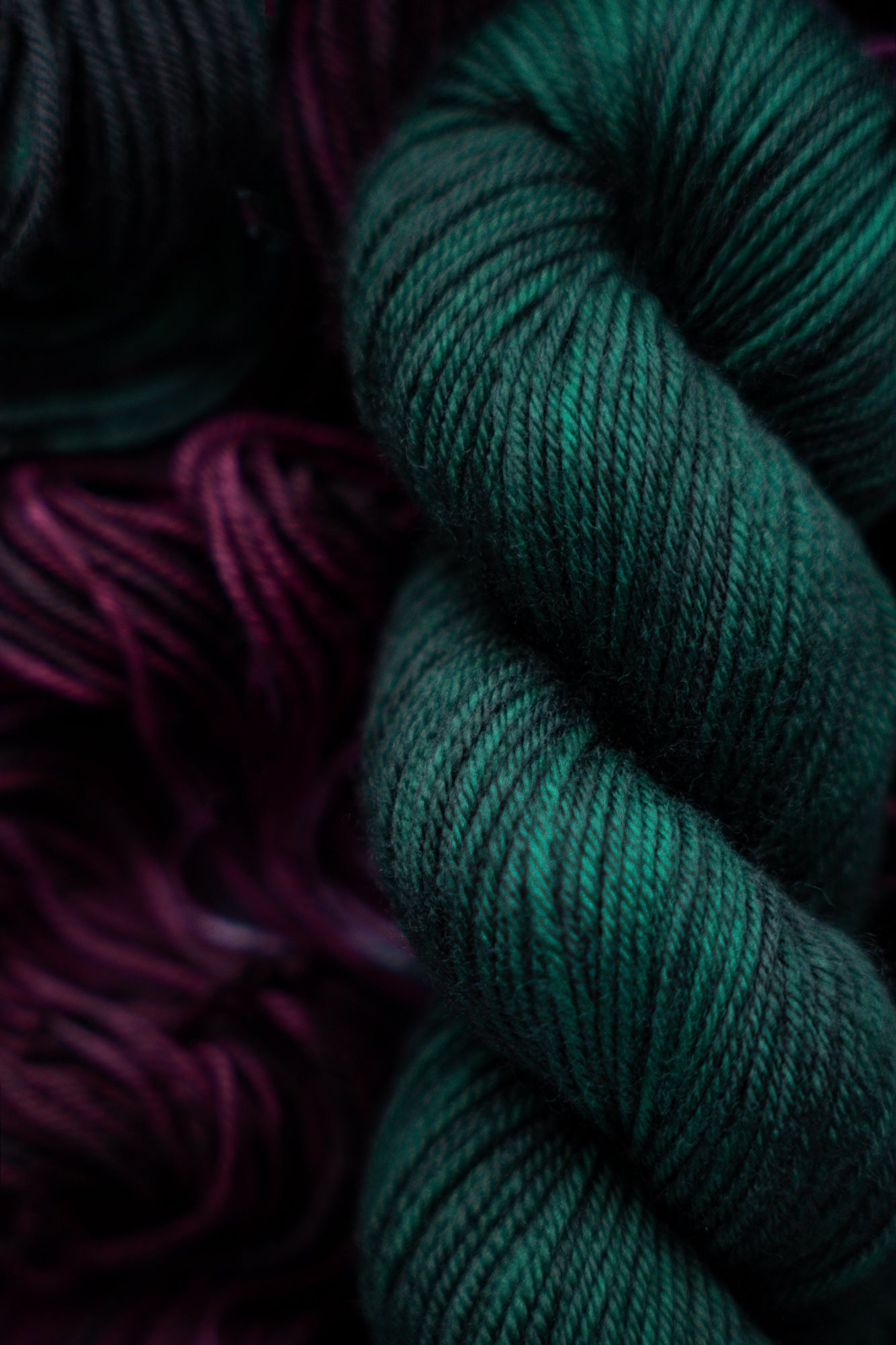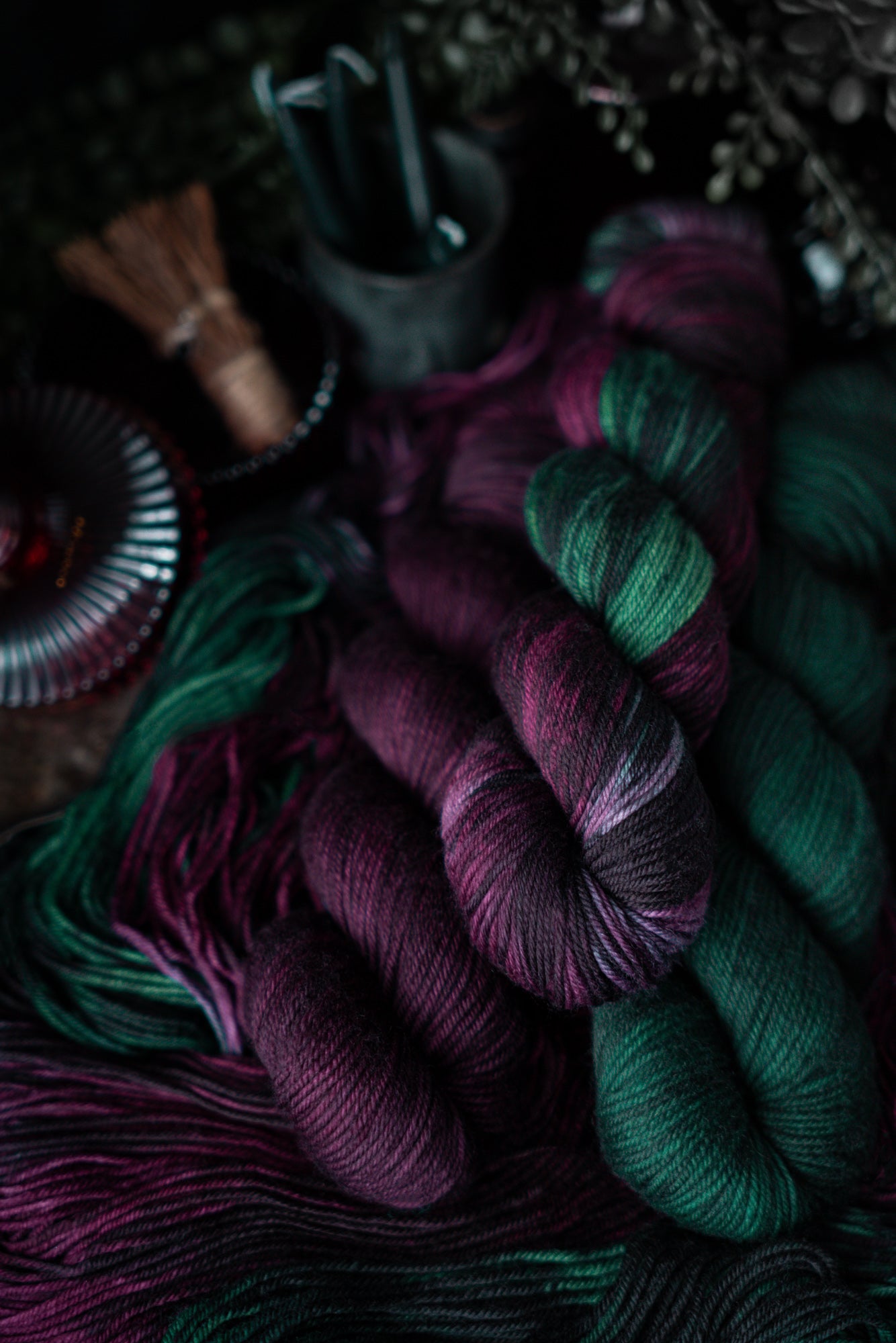 All skeins of Crow and Crescent Yarn are hand dyed with love in Shoreline, WA using high quality professional acid dyes in small batches. Each skein is unique, and dye lots vary.