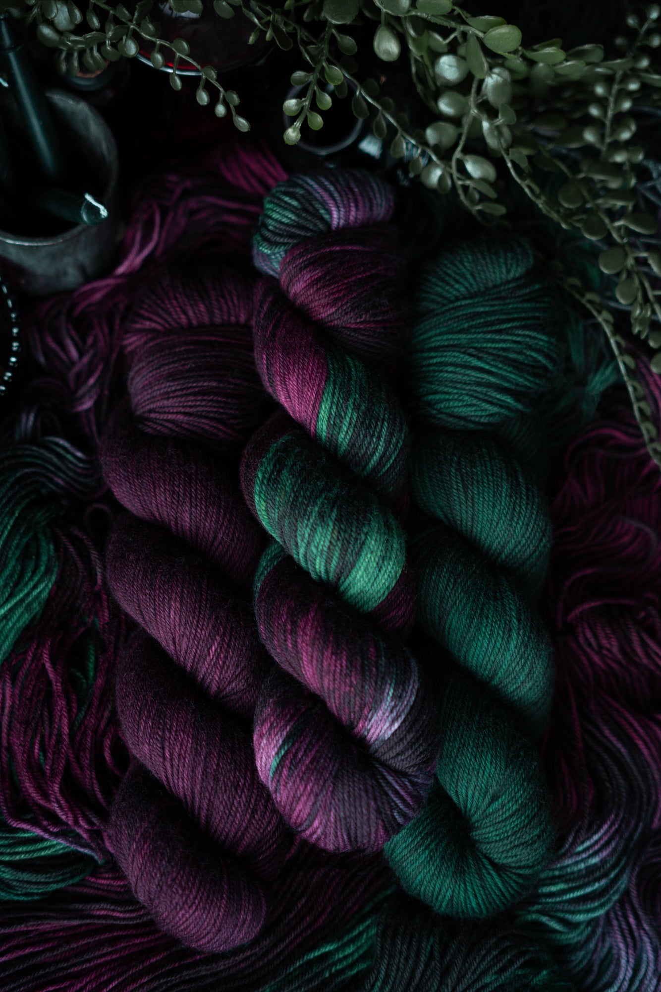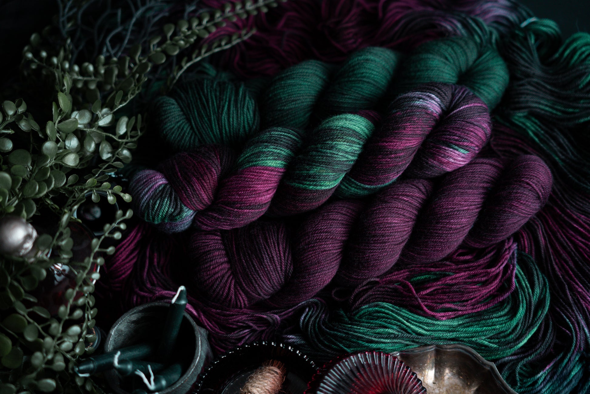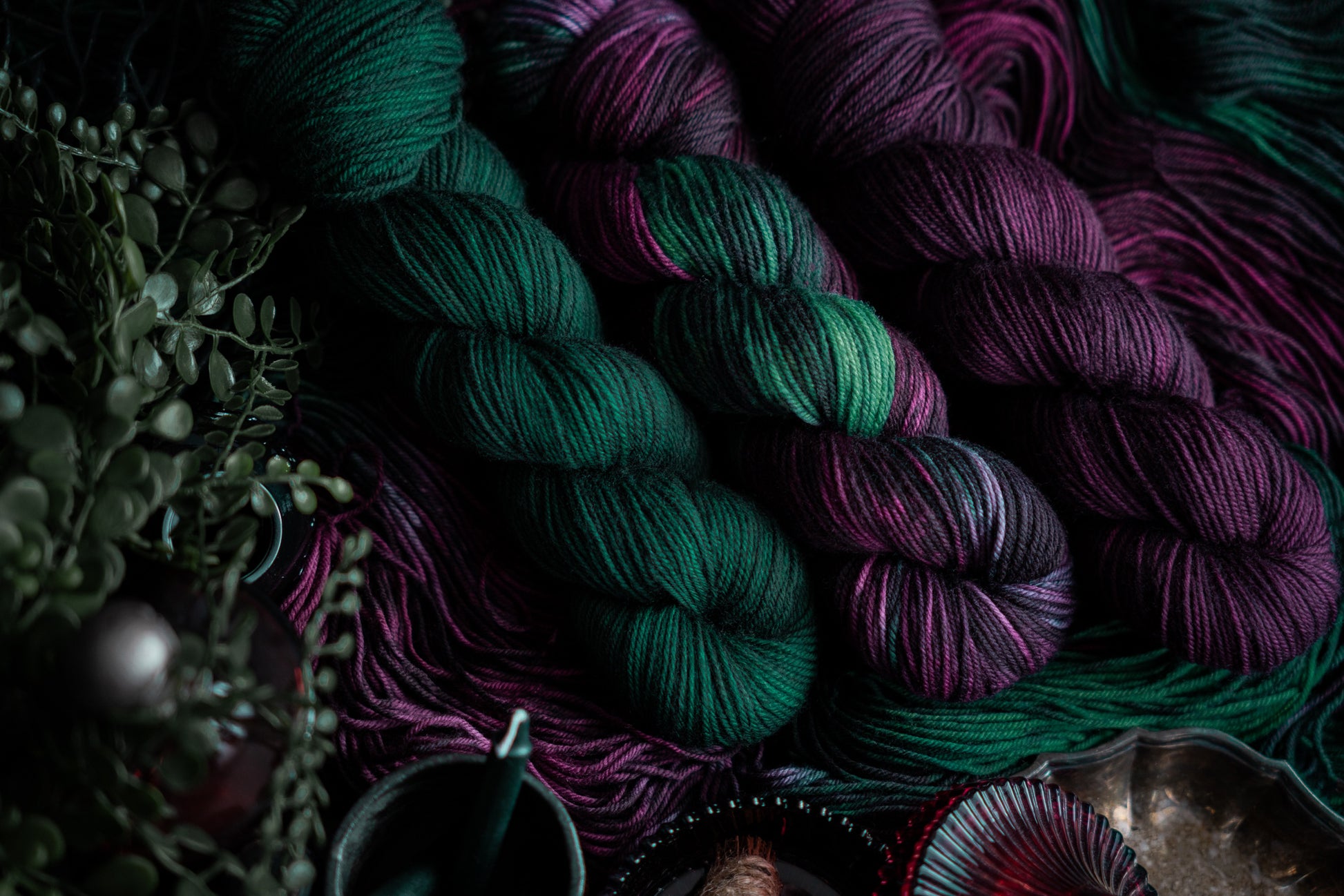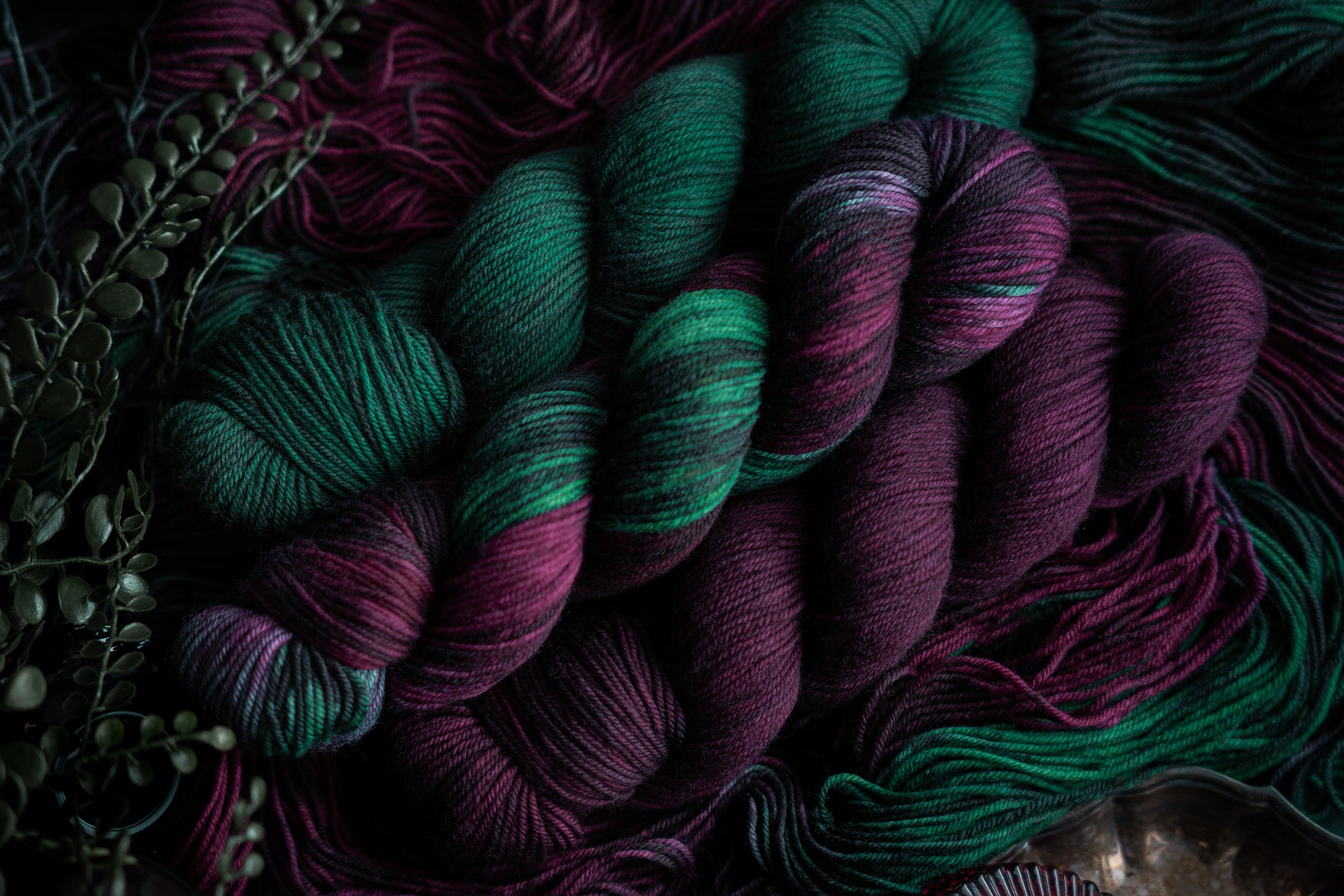 All skeins of Crow and Crescent Yarn are hand dyed with love in Shoreline, WA using high quality professional acid dyes in small batches. Each skein is unique, and dye lots vary.